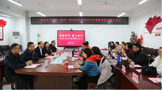 为推动学院教育事业薪火相传、持续高质量发展,进一步增强退休教师荣誉感、仪式感和归属感,激励青年教师不忘初心、接续奋斗,1月13日上午,教师教育学院在二号综合楼B4001会议室举行2024年度教师荣誉退休仪式,党委委员、副校长魏新江、荣休教师、学院领导班子、教师代表参与此次活动,仪式由学院党委书记龚明玉主持。