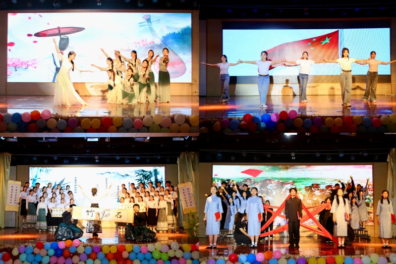 比赛共有来自4个学院的10支队伍参加,各团队以饱满的热情和精湛的技艺,采取咏唱、诵读等形式,巧妙融入各类乐器演奏、优美舞蹈、书法展示等艺术元素,对《琵琶行》《竹石》《子衿》《但愿人长久》《诗笛润师情》《玉盘》《江畔独步寻花》《长征精神永放光芒》等经典曲目进行了精彩演绎。他们用深情的诉说传递温暖,以激昂的语调表达壮志豪情,将文字化作灵动的音符,为千载文脉注入蓬勃的青春活力,展现了当代大学生对中华优秀传统文化和红色革命文化的深刻理解和独特诠释。