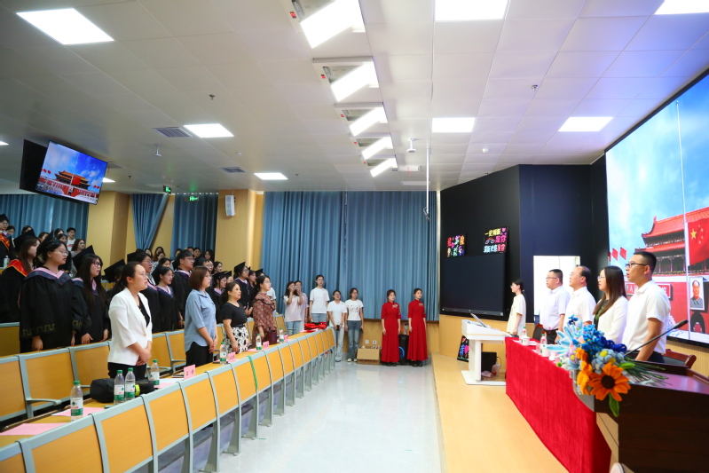国歌奏响,全体起立齐唱,在庄严的氛围中,毕业典礼正式拉开帷幕。