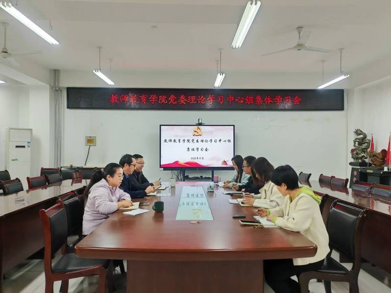 10月27日,教师教育学院党委理论学习中心组在学院会议室召开本年度第十次集体学习。会议由学院党委书记龚明玉主持,学院党委成员参加学习。