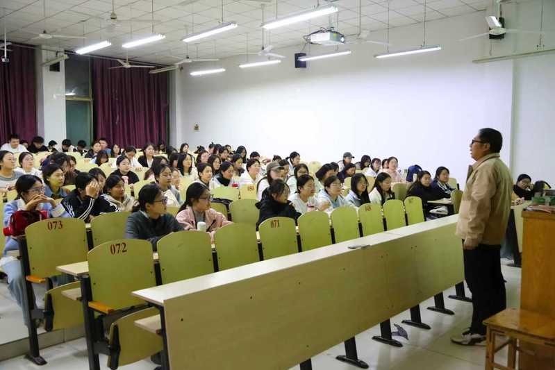 分享会上,张鹏围绕考研最新政策动向、复习计划制定、心理调适与压力应对等关键问题展开系统讲解,并结合典型案例,为同学们提供了兼具实用性与针对性的备考建议。此外,他还拓展介绍了考公、考编、三支一扶、教师岗位以及出国深造等多种发展路径,有效拓宽了学生的就业视野与选择空间。整场动员会内容充实、情感真挚。他结合自身成长与教学经历,倾情分享了一系列备考“锦囊”,助力同学们走稳考研之路。在互动交流环节,同学们踊跃提问,他逐一细致解答,现场气氛热烈,反响良好。