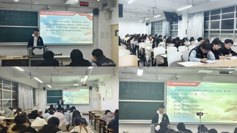 11月5日,教师教育学院以线上线下相结合的形式,在南校区综合楼B205、校本部二号综合楼A4015开展“严明纪律规矩,锻造青春品格”入团积极分子团课培训,本次培训共160余名团员及入团积极分子参与培训,团委学生第三副书记耿智鉴担任主讲人。