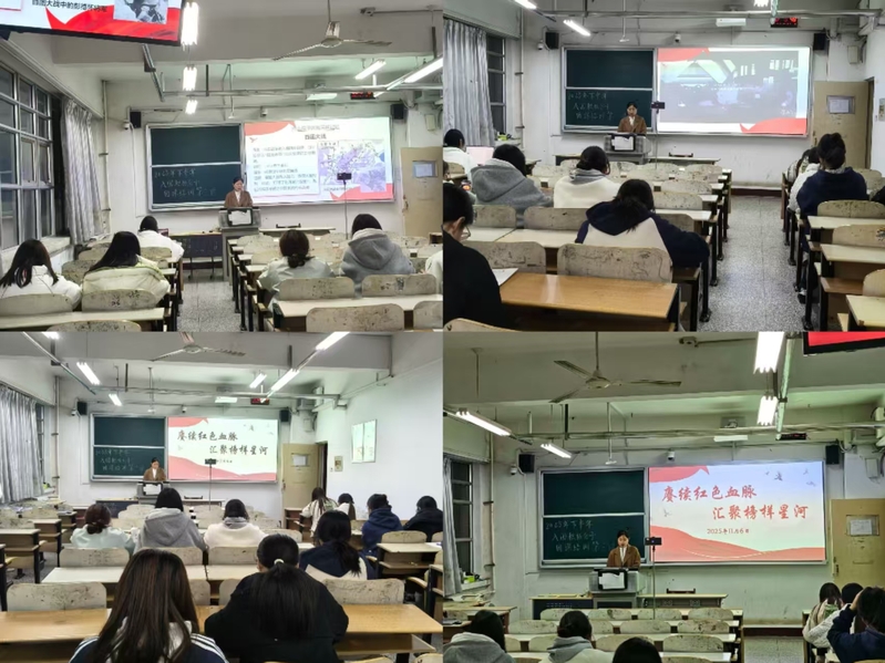 11月6日,教师教育学院以线上线下结合的形式,在南校区综合楼B205开展“赓续红色血脉,汇聚榜样星河”入团积极分子团课培训,本次培训共60人参加,学院学生会副主席徐一心担任主讲人。