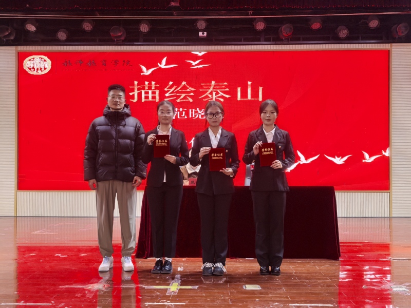 经过作品的评比,周润玉、高孟媛、刘丽娜荣获“教师成长先锋”,张雨寒荣获“师范技能标兵”,郭书言获“红色宣讲达人”,范晓钰、滕佳熙、程依乐获“泰山绘艺能手”,张宇涵、马相凝、刘丹、邱铭汭获“感恩信创作之星”,张晓玉、刘丽获“师德准则手抄达人”。