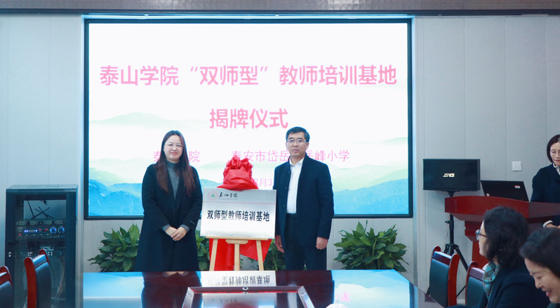 12月3日,泰山学院教师教育学院与岱岳区岳峰小学“双师型”教师培训基地签约暨揭牌仪式顺利举行。教师教育学院党委书记龚明玉与岳峰小学党支部书记、校长张春共同为“双师型”教师培训基地揭牌;学院党委副书记、院长谢文庆与校长张春分别代表双方签署合作协议,明确共建核心目标与合作路径。