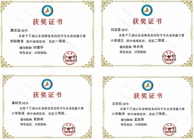 系列举措取得显著成果:学生英语能力持续增强,2025年6月四级通过人数新增100余人,2025届毕业生四级通过率65%;教师资格考试通过人数新增300余人;在2025年山东省师范生从业技能大赛中,4名学生荣获佳绩,教学设计与课堂表现广受好评。此外,学院通过安排教师跟踪实习、及时指导,建设“双师型”教师培训基地,助力学生快速适应教学一线。活动不仅搭建了教学展示与素养提升的平台,更促进了师范教育与美育的深度融合,为培养德才兼备的新时代教师奠定了扎实基础。