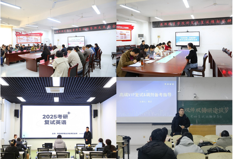“双师双铸,研途筑梦”系列活动以“动员—指导—实战”为主线,构建全链条考研服务体系。动员环节邀请专业讲师解读形势、指导规划,有效激发学生报考热情;指导环节强化“双师”协同,组织教师开展模拟面试与专业指导,并聘请10名上岸学生担任“学生导师”,发挥朋辈“传帮带”作用;实战环节通过20余场线上线下分享会,由2025届优秀学子传授备考、复试与调剂经验,助力学生提升实战能力、缓解备考焦虑。该体系以“专业引导—实战模拟—朋辈领航”形成闭环支撑,在深化学院学风建设的同时,为学生升学提供全程助力。2025届毕业生中共76人考取研究生,其中9人升入双一流高校。2026届研究生报考率超50%,持续增长。
