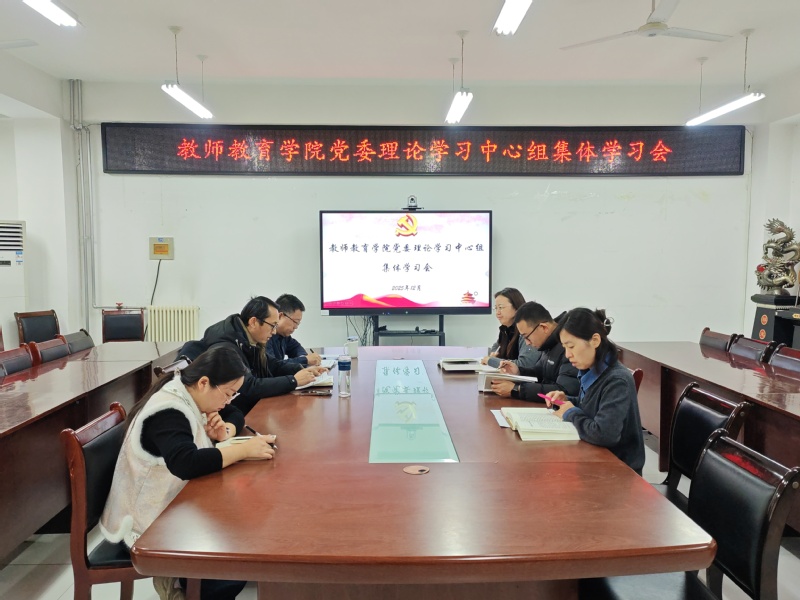 12月22日,教师教育学院党委理论学习中心组在学院会议室召开本年度第十二次集体学习。会议由学院党委书记龚明玉主持,学院党委成员参加学习。