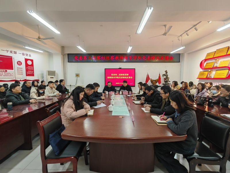 学校党委第二巡察组成员,教师教育学院党委领导班子成员,学院教职工、学生党员代表参加会议。