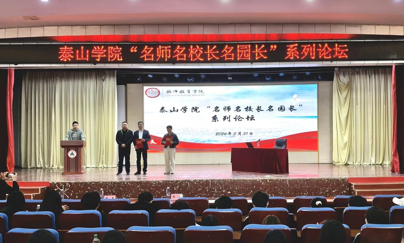 3月31日,泰山学院教师教育学院联合教师教育研究中心举办“名师名校长名园长”系列论坛,特邀岳峰小学张春校长与泰安师范附属学校语文教师陈玲担任主讲。教师教育学院主要负责人谢文庆出席论坛并为两位专家颁发荣誉证书。