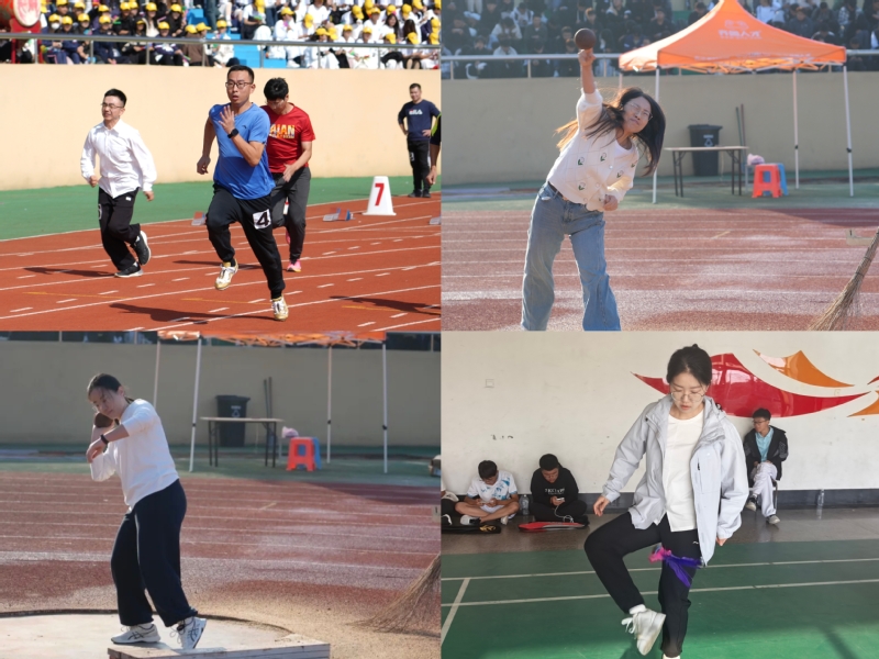 比赛现场,竞技氛围热烈高涨。赛道上,运动员如离弦之箭,在短跑中疾如闪电,在长跑中执着坚持,跨栏选手更以轻盈姿态跨越障碍;田赛场地内,跳高、跳远选手助跑、起跳、腾空,一次次挑战自我,铅球选手凝神聚力、转体投掷,划出有力弧线;飞盘、跳绳、踢毽等项目同样精彩,师生同场竞技、各展所长。最终教工组荣获女子铅球冠军,多位教师在各项比赛中表现优异;学生组在跨栏、短跑、长跑、铅球及接力项目中摘金夺银,展现出全面的体育素养。团体项目中,女子4×100米接力勇夺桂冠,男子接力同样名列前茅。全院运动健儿共斩获8枚金牌、7枚银牌与5枚铜牌,用实力诠释“更高、更快、更强”的体育精神。