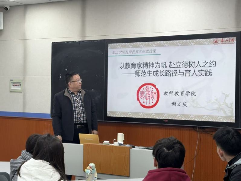 12月1日,教师教育学院开展题为“以教育家精神为帆,赴立德树人之约——师范生成长路径与育人实践”的思政课,学院党委副书记、院长谢文庆主讲。